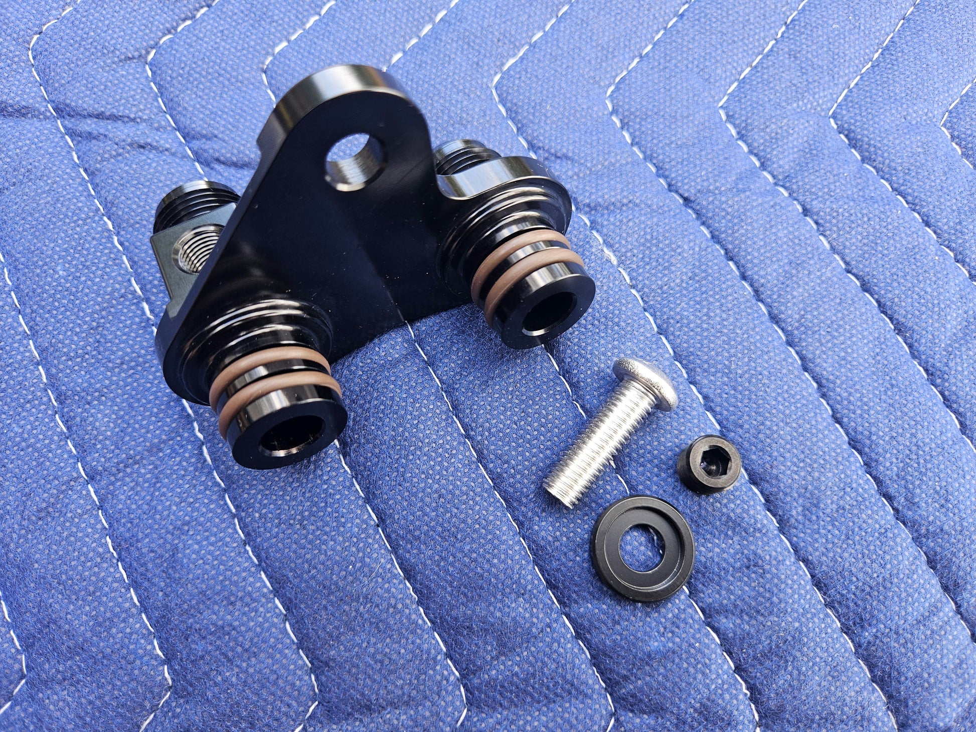 UPR Products -8 AN Transmission Cooler Adapter fittings. Adapts from the side of the 6r80 and 10r80 Transmissions to -8 AN Male. Also includes the mounting bolt and washer, along with the 1/4 NPT Port if you want to add in a temp gauge or sender.