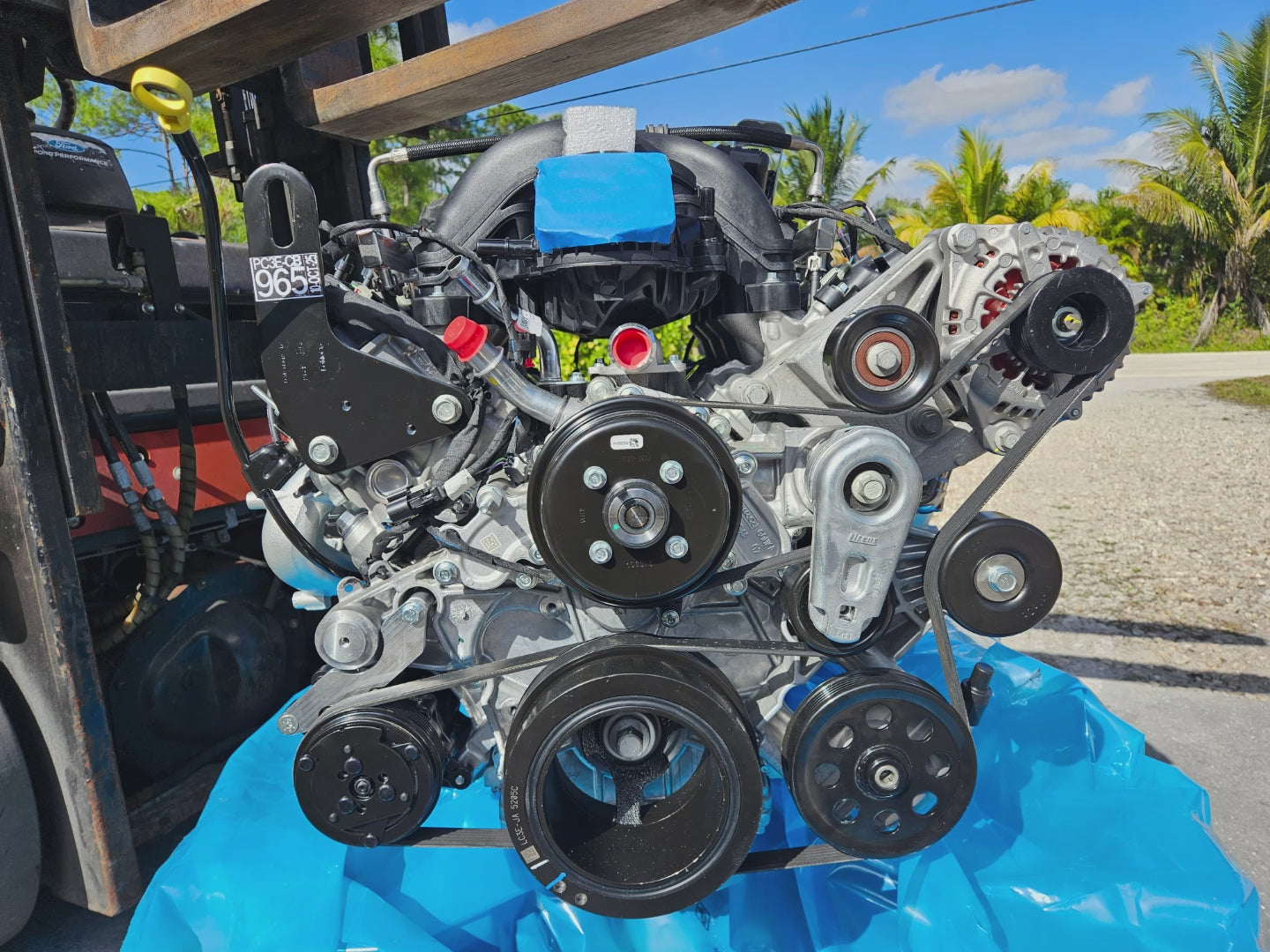 Available as a Kit with Compressor and Stretch Belt if desired. Also available with a traditional serpentine belt if looking to retain factory tensioners instead.